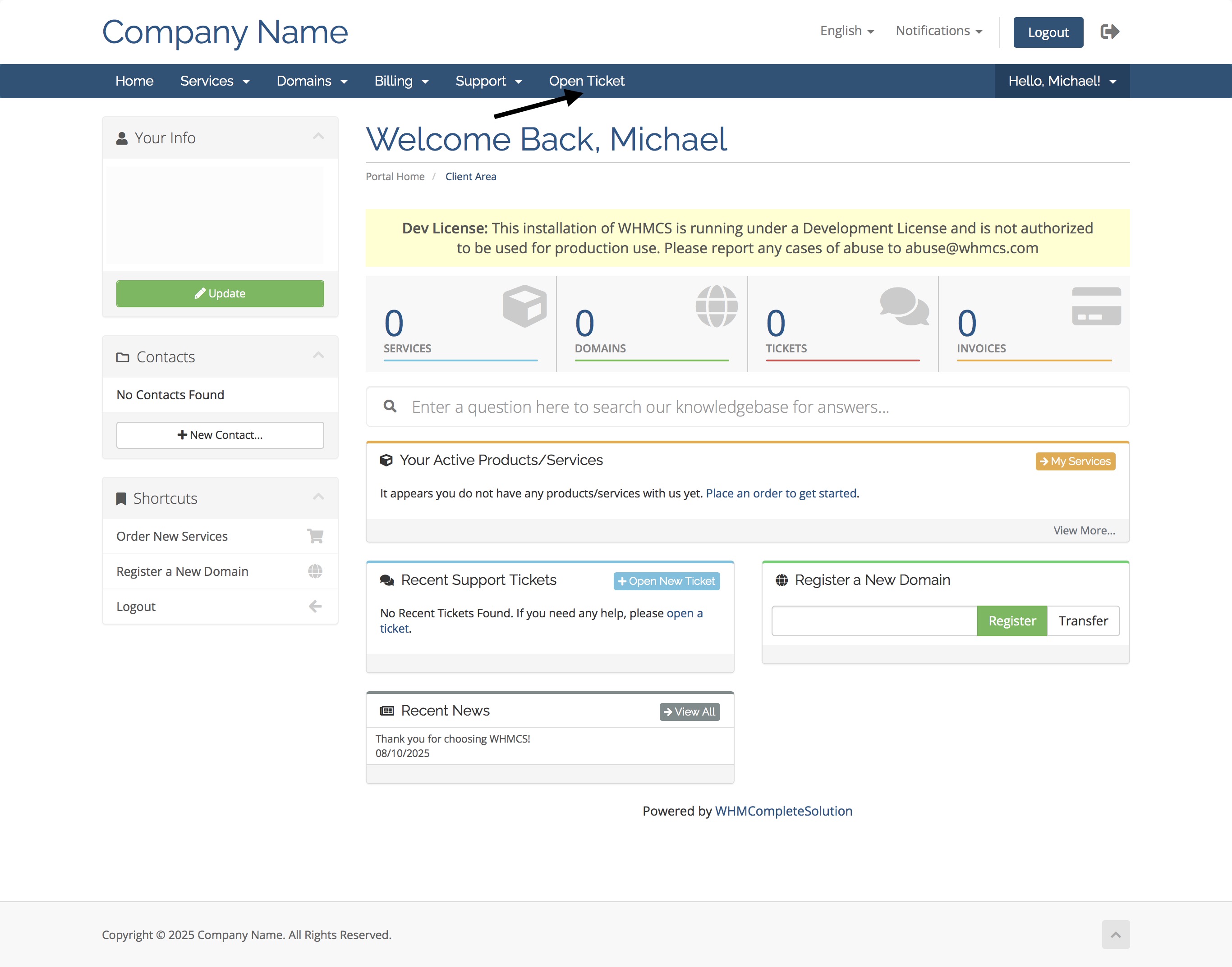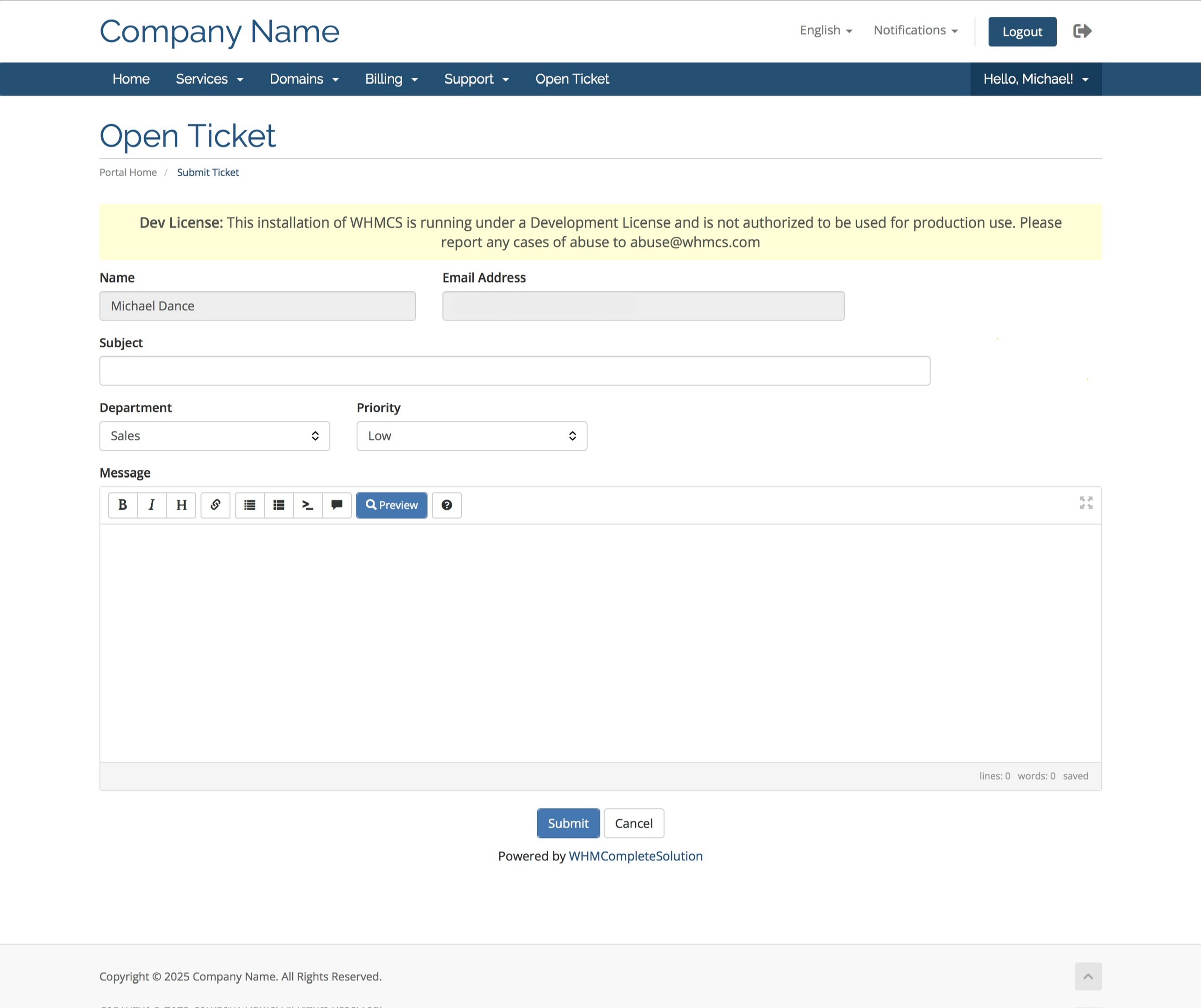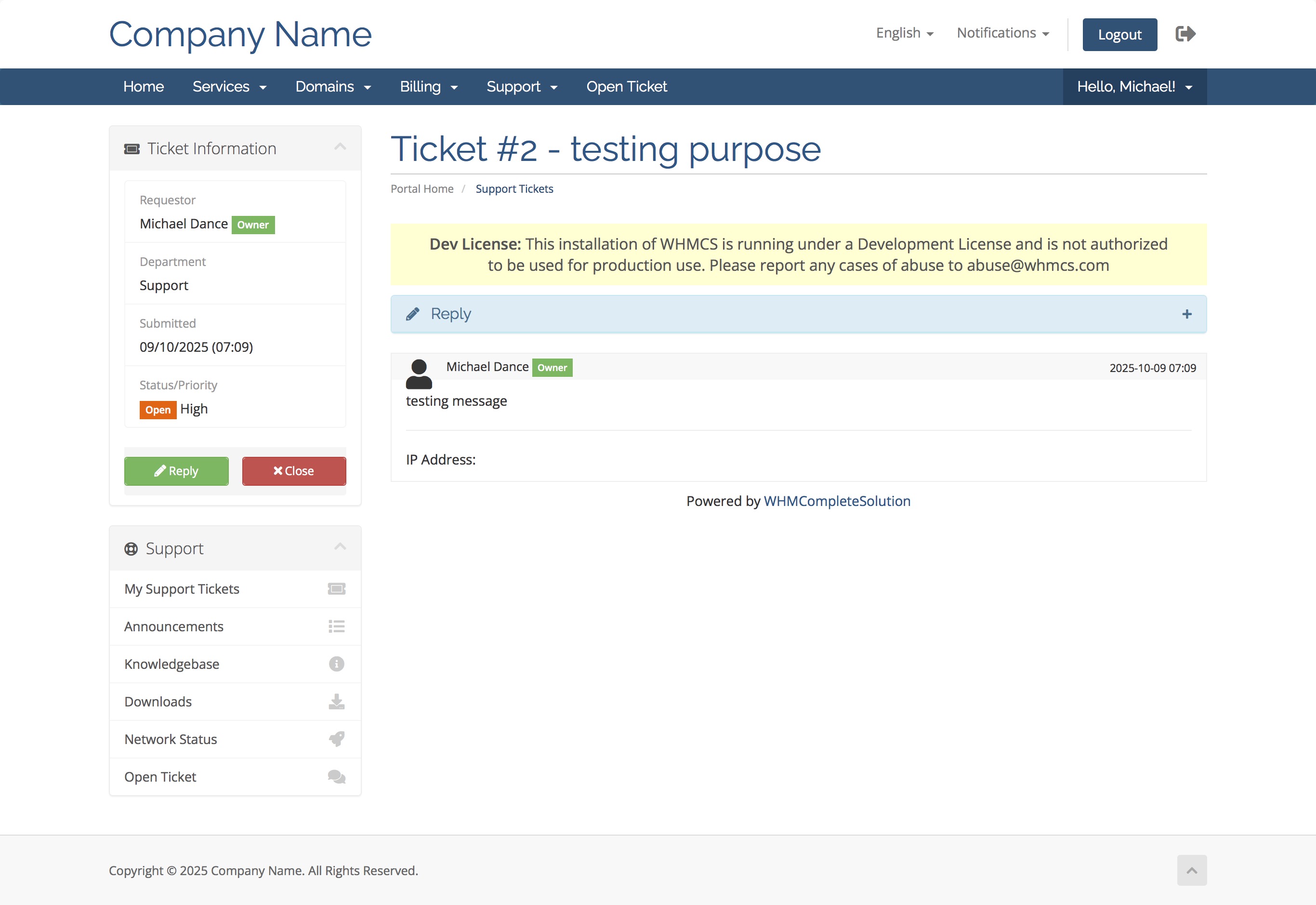 This brings up the open ticket page, just like the default WHMCS, this means it’s familiar to your customers.