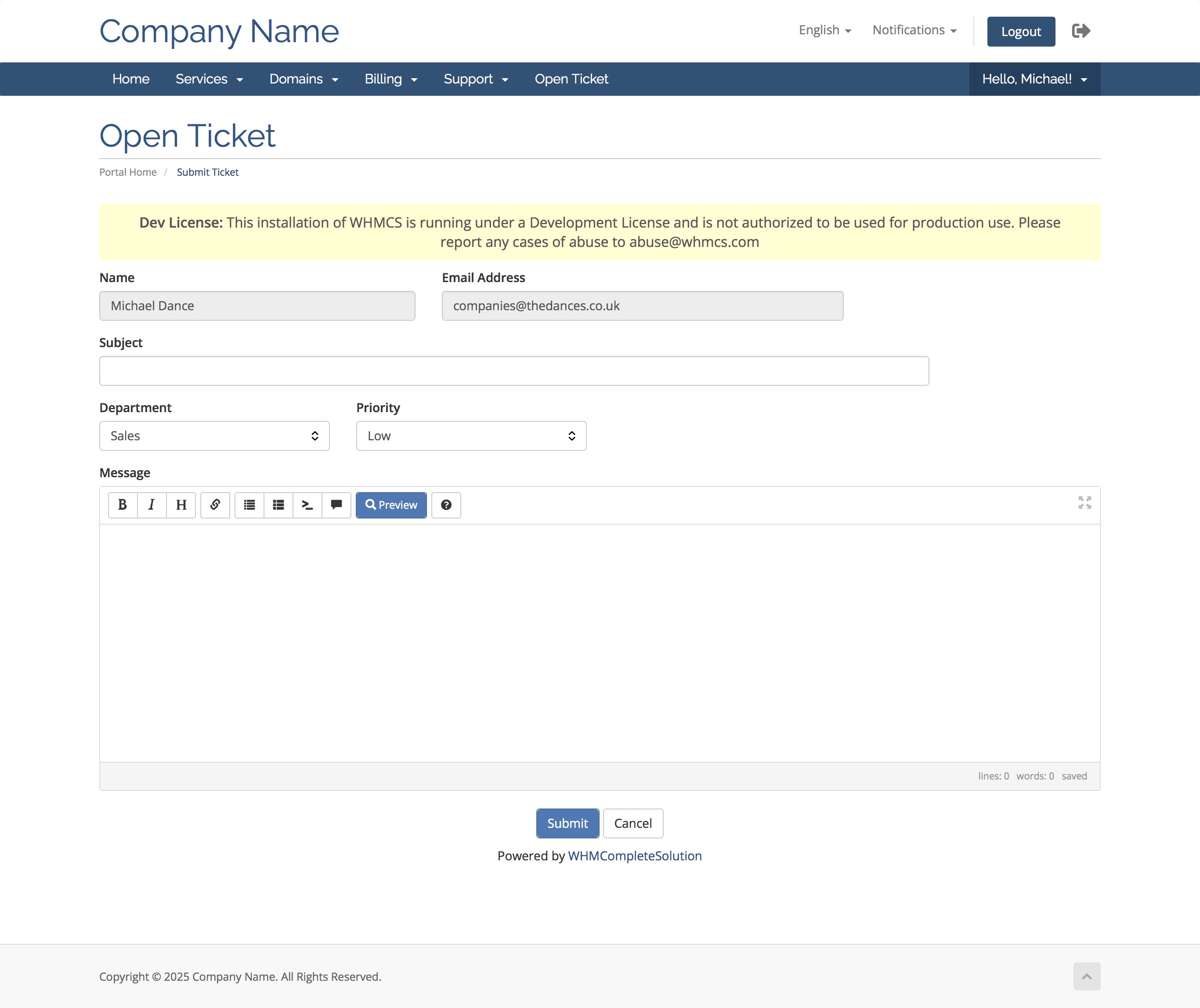 This brings up the open ticket page, just like the default WHMCS, this means it’s familiar to your customers.